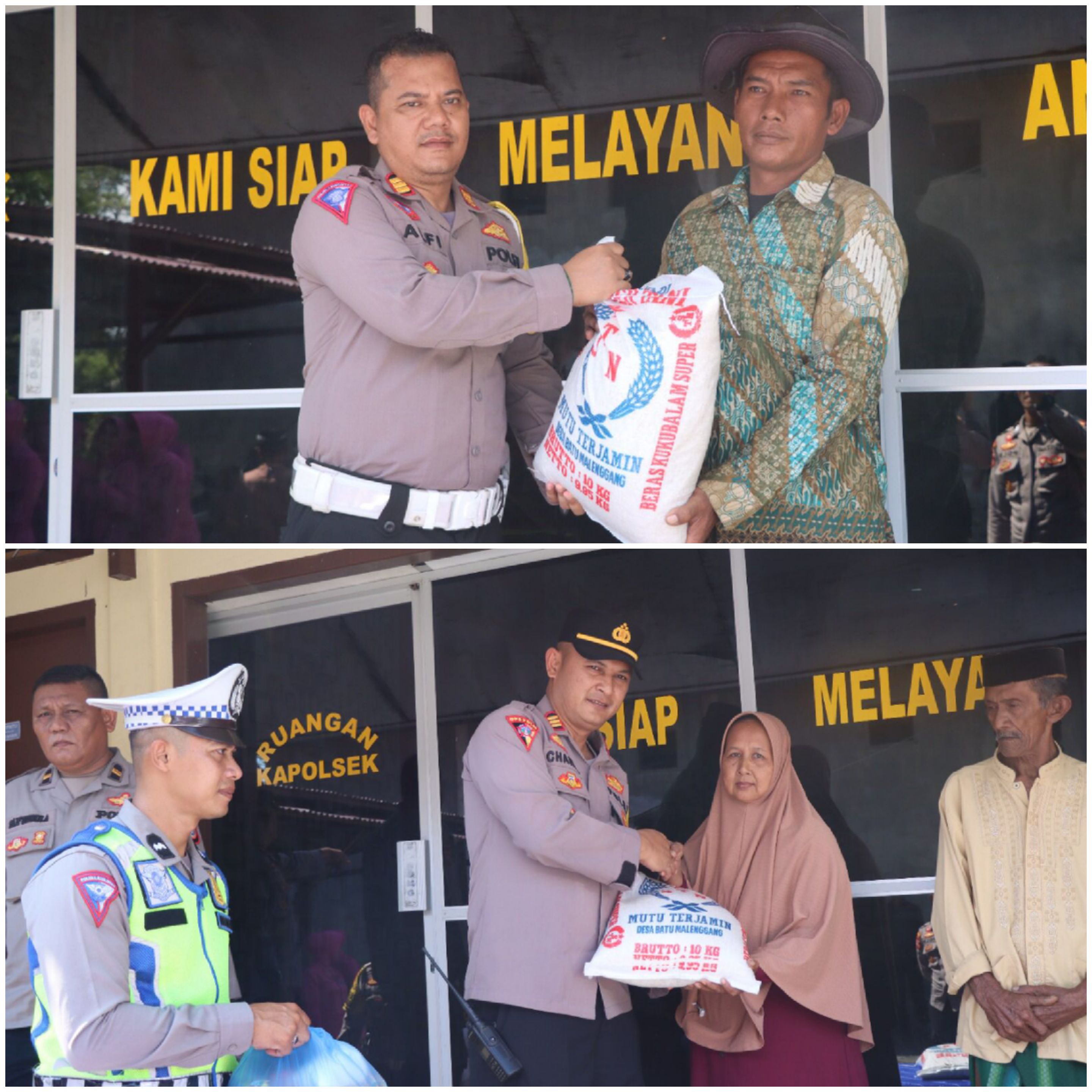 Suka makmue - Kapolres Nagan Raya AKBP Rudi Saeful Hadi, memberikan perhatian khusus kepada masyarakat kurang mampu di wilayah hukum Polsek kuala pesisir dengan melaksanakan kegiatan Jumat berkah yaitu melaksanakan pembagian sembako, Dalam upaya nyata untuk meringankan beban ekonomi, Kapolres dan anggota Polres turut serta dalam pendistribusian bantuan, menciptakan ikatan empati yang kuat antara kepolisian dan masyarakat setempat.