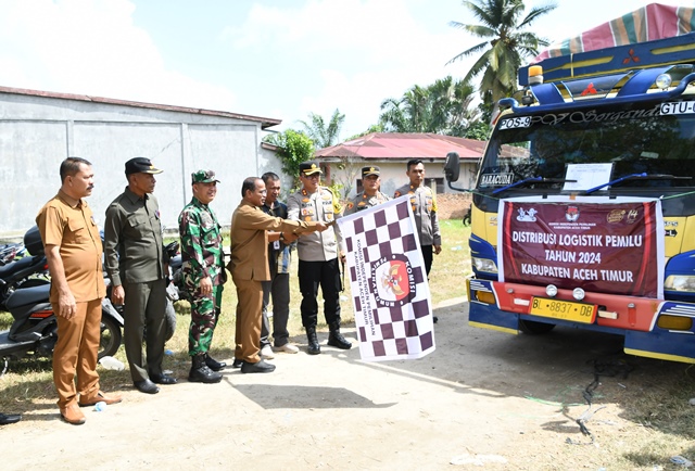 Distribusi 2024 yang digelar di Gudang Logistik Pemilu KIP Kabupaten Aceh Timur Jalan Medan – Banda Aceh, Desa Keumuneng, Kecamatan Peureulak, Kabupaten Aceh Timur turut dihadiri Kabag Ops AKP Raja Aminuddin Harahap, S.Sos; Kepala Satpol PP/WH Kabupaten Aceh Timur T. Amran, S.E., M.M. Ketua KIP Kabupaten Aceh Timur Yusri, S.E bersama seluruh anggota Komisioner; Kapolsek Peureulak AKP Muslim Siregar, S.H; Danramil 04/PLK Kapten Inf Jaya Sakti dan Camat Peureulak Nasri, S.E.