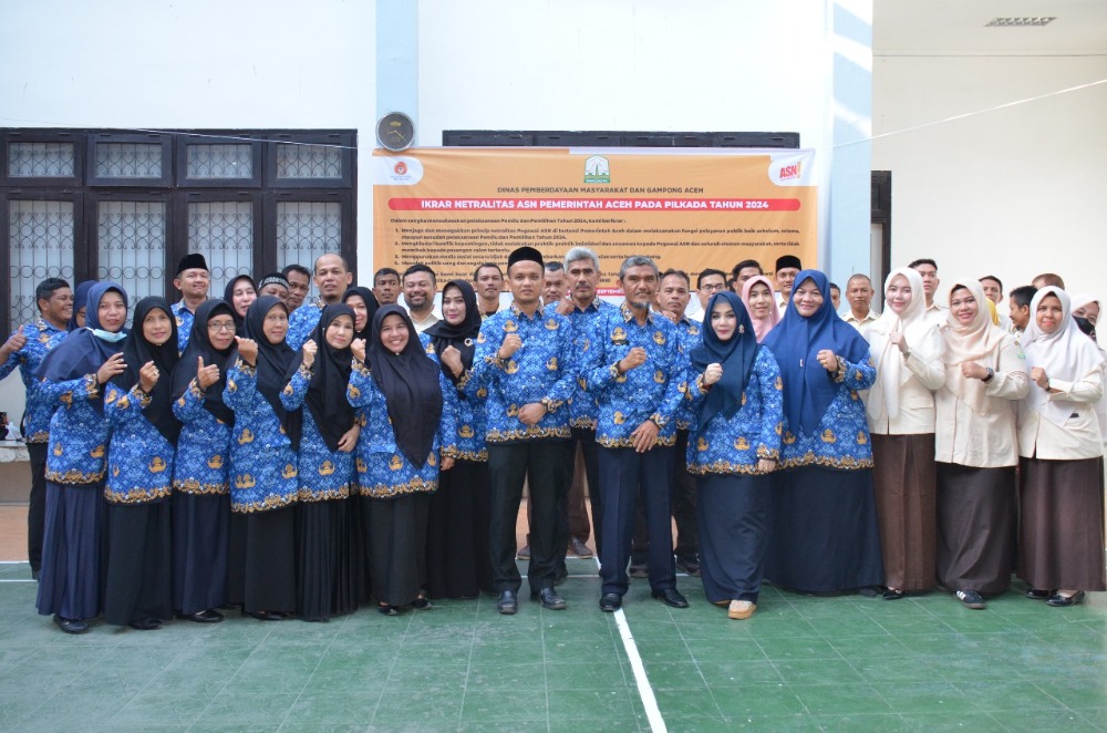 "Dalam rangka menyukseskan pelaksanaan pemilihan Kepala Daerah tahun 2024, kami berikrar untuk menjaga dan menegakkan prinsip netralitas Aparatur Sipil Negara di instansi masing-masing, dalam melaksanakan fungsi pelayanan publik, baik sebelum, selama, maupun sesudah pelaksanaan Pilkada,” demikian salah satu bunyi ikrar yang dibacakan oleh perwakilan pegawai DPMG Aceh.