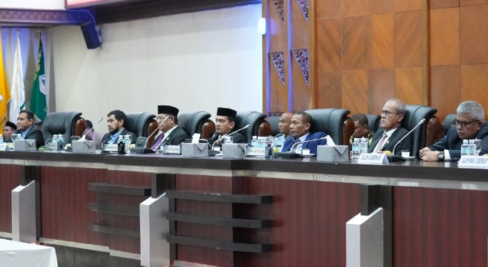 Banda Aceh - Rapat Paripurna DPRA tahun 2024 dengan agenda; 1. Penetapan Panitia Khusus (Pansus) DPRA tahun 2024; dan 2. Penandatanganan Pernyataan Bersedia Menjalankan Butir-Butir MoU Helsinki dan Undang-Undang Nomor 11 Tahun 2006 Tentang Pemerintahan Aceh serta Peraturan Pelaksanaannya oleh Pasangan Calon Gubernur Dan Wakil Gubernur Aceh pada Pilkada Tahun 2024 yang dihadiri oleh Pimpinan dan sejumlah Anggota Dewan, Pj Gubernur dan Pasangan Calon Gubernur dan Wakil Gubernur Aceh di Gedung Utama DPRA, Kamis 12 September 2024, pukul 10.00 WIB.