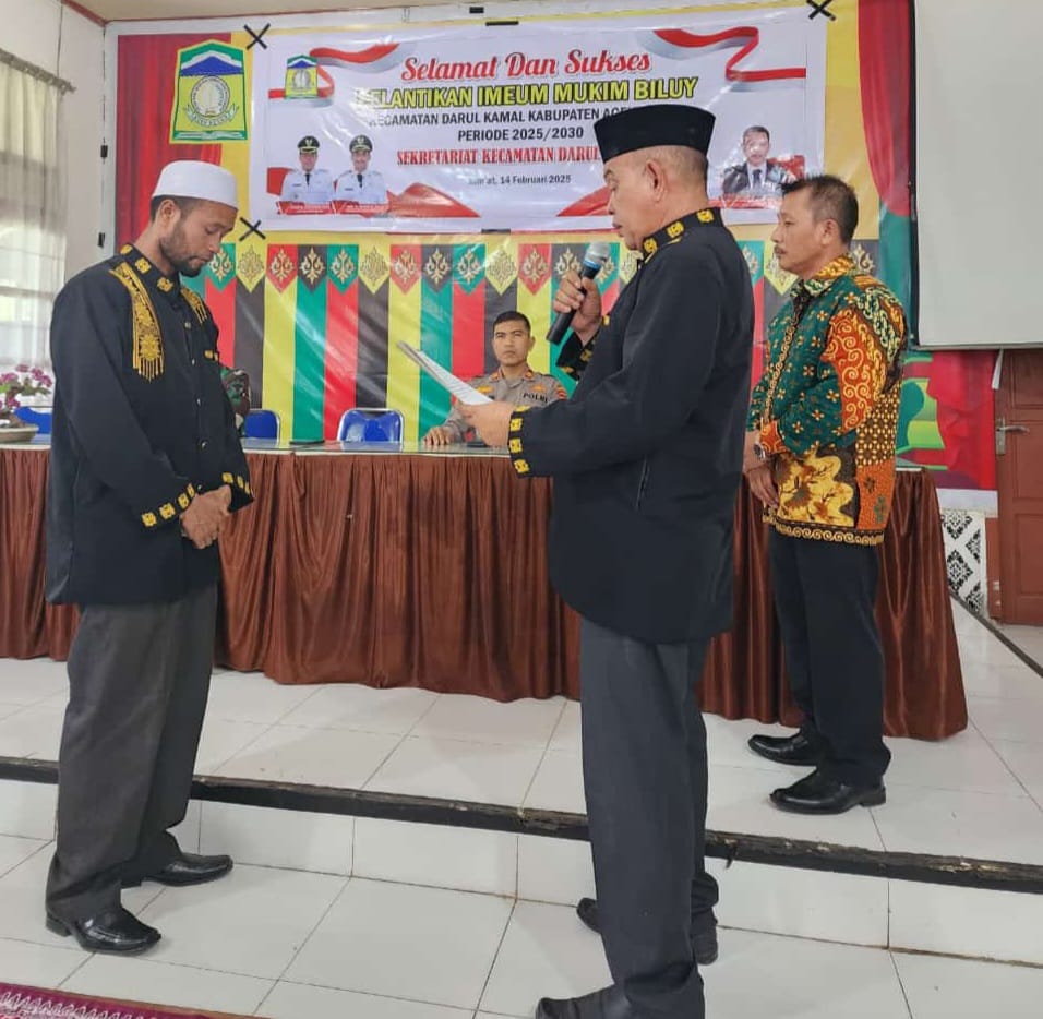 Pengambilan sumpah jabatan dilakukan oleh Camat Darul Kamal berdasarkan Surat Keputusan Bupati Aceh Besar Nomor 35 Tahun 2025 Tentang pengangkatan Imum Mukim Biluy, Kecamatan Darul Kamal Periode 2025-2030.