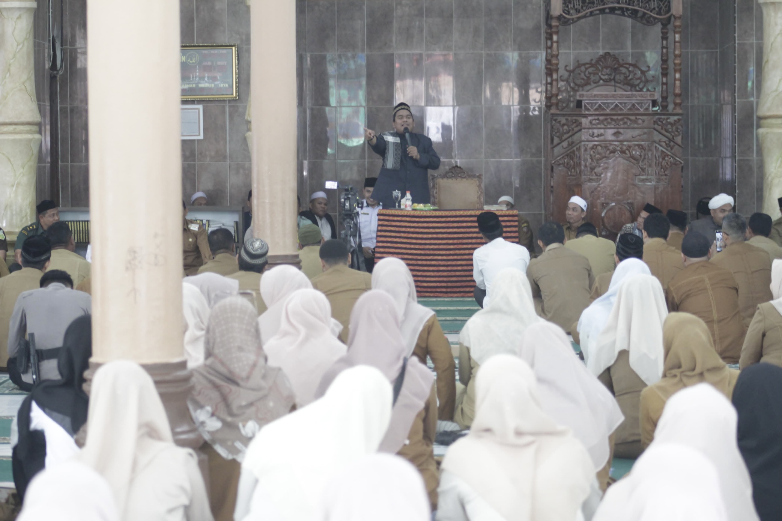 Dalam kesempatan tersebut, Pj Bupati mengajak untuk meningkatkan kualitas ibadah, menjalin ukhuwah islamiyah dan saling mendukung dalam menciptakan masyarakat yang rukun dan damai.