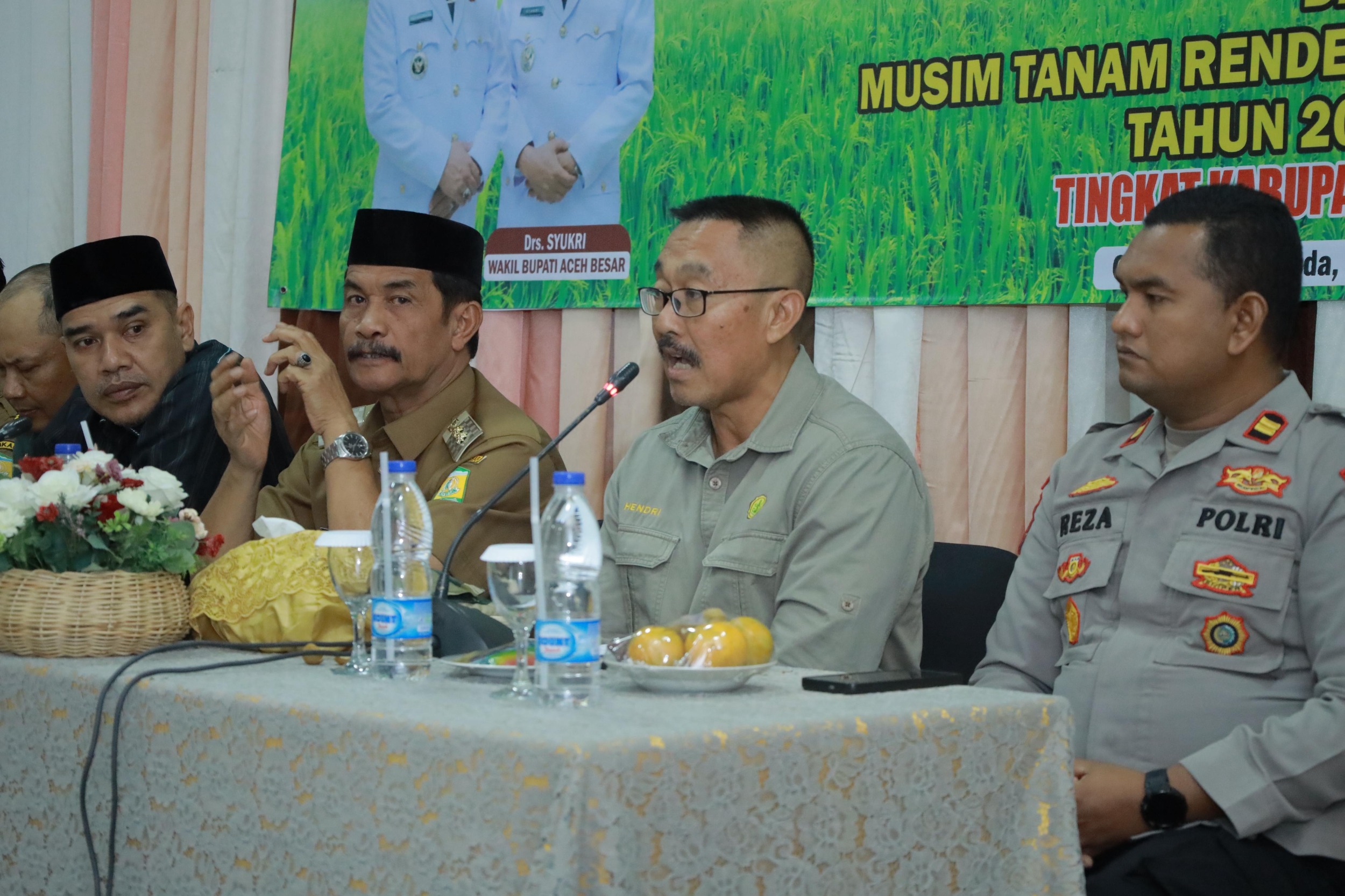 Sementara itu, Kepala Dinas Pertanian Aceh Besar, Jakfar, SP MSi dalam laporannya menekankan pentingnya sinergi lintas sektor dalam mendukung keberhasilan musim tanam tahun ini. “Hari ini semua stakeholder kita kumpulkan. Kita ingin memastikan jadwal tanam bisa disepakati bersama, mulai dari distribusi air, proses pembajakan hingga masa panen,” ujarnya.