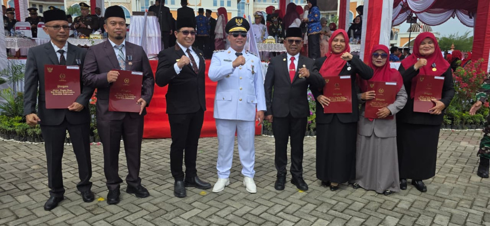 Prosesi pelaksanaan upacara memperingati HUT ke-80 Proklamasi Kemerdekaan RI berlangsung khidmat, sesuai dengan arahan dan tata tertib protokoler yang dibacakan oleh pembawa acara Chandra Guepta, SSos (staf BKPSDM Kabupaten Aceh Utara).