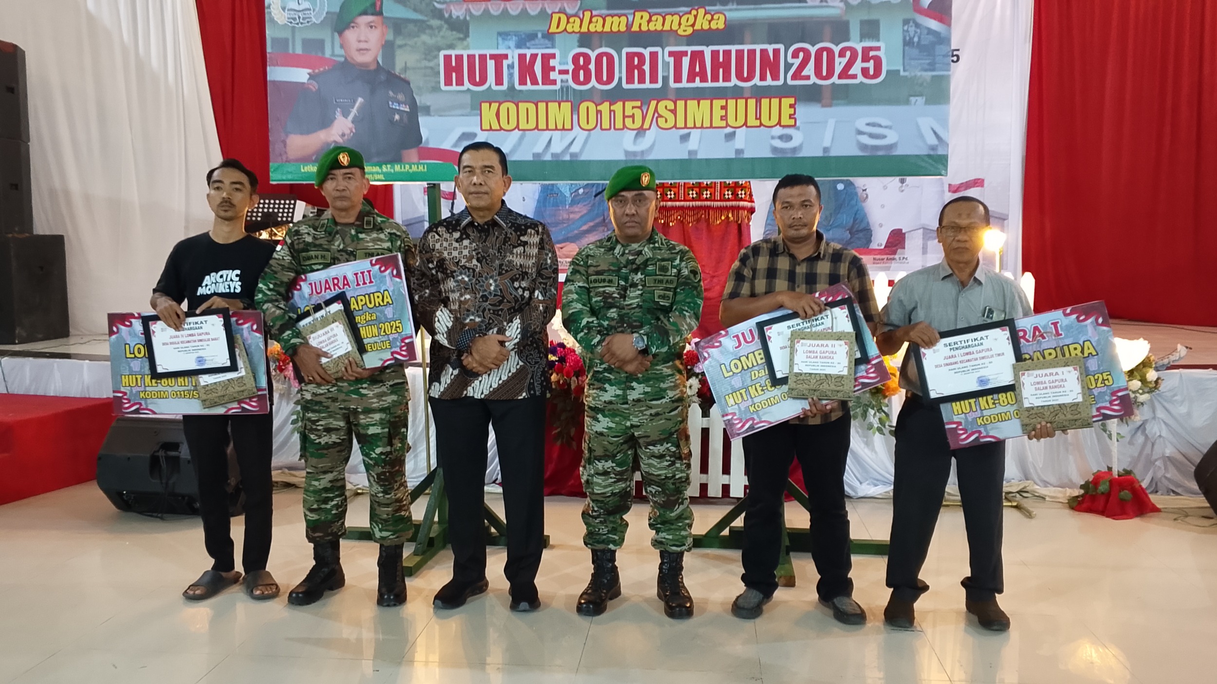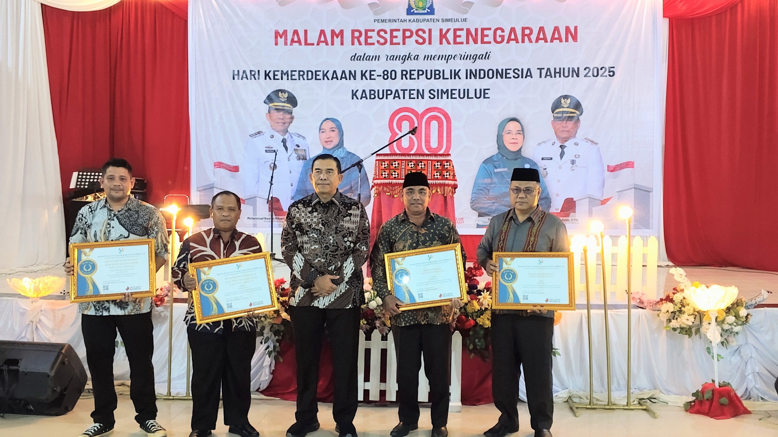 Malam resepsi kenegaraan ini berlangsung meriah dengan berbagai rangkaian acara, salah satunya penyerahan hadiah dan penghargaan bagi pemenang perlombaan dalam rangka peringatan 17 Agustus.diantaranya Penyerahan penghargaan hadia Kepada juara Pemeng Lomba Gapura terbaik yang di adakan Kodim 0115 Simelue serta Salah satu prestasi membanggakan datang dari Tim PKK Kabupaten Simeulue yang mewakili Kecamatan Simeulue Tengah, Desa Laukeh, yang berhasil meraih Juara Harapan II dalam lomba Gampong Mawaddah Warahmah tingkat Provinsi Aceh dari 23 kabupaten/kota se-Aceh.